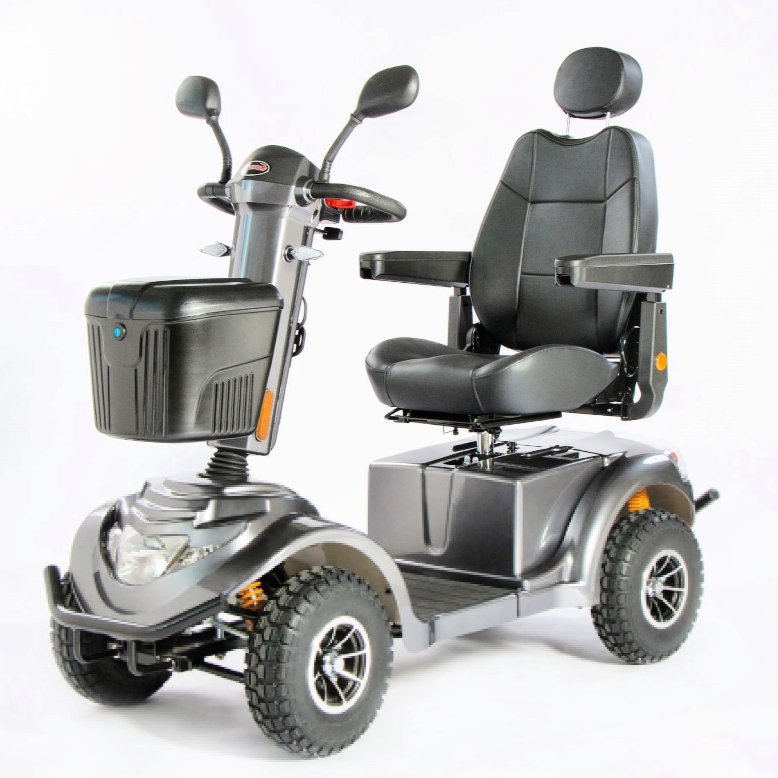 deluxe high back seat with headrest and sliders, lockable front basket, bottle